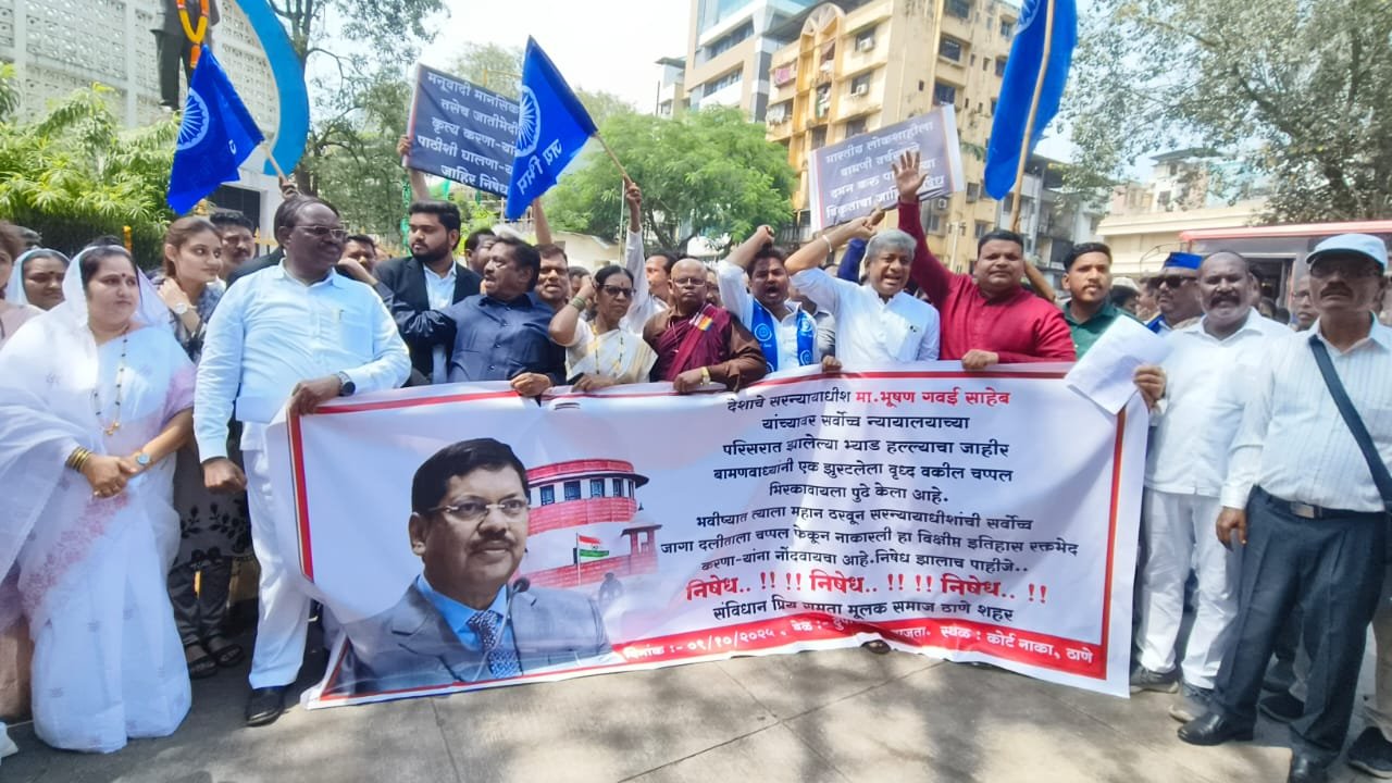 या प्रसंगी नानासाहेब इंदिसे म्हणाले की, सोमवारी राकेश किशोर या वकिलाने सरन्यायाधीशांवर बूट फेकून मारण्याचा प्रयत्न केला. सरन्यायाधीश म्हणजे, देशाच्या न्यायप्रक्रियेतील सर्वोच्च स्थान आहे. आज तेही सुरक्षित नसतील तर देशातील एकही नागरिक सुरक्षित नाहीत, हेच स्पष्ट होत आहे. हा बूट फेकण्याचा प्रयत्न फक्त न्यायव्यवस्थेवर नव्हता. तर ते बौद्ध समाजातून आलेले असल्यानेच राकेश किशोर याने हे कृत्य केले आहे, असा आरोप केला.भास्कर वाघमारे यांनी, सरन्यायाधीश भूषण गवई जेव्हा महाराष्ट्रात आले होते. तेव्हा राज्य शासनाने त्यांना प्रोटोकॉल दिला नव्हता. यावरून मागासवर्गीय माणूस सर्वोच्च स्थानी बसल्याचे या लोकांना मान्य नसल्याचेच दिसून येत आहे. या घटनेचा आम्ही निषेध करतो. ही घटना फक्त व्यक्ती म्हणून न पाहता न्यायव्यवस्थेवर केलेला हल्ला आहे. संविधानिक ढाचा तोडण्याचा हा प्रयत्न केला जात आहे. राष्ट्रीय स्वयंसेवक संघाने पूर्वीपासूनच संविधानाला विरोध करण्याचे धोरण आखले आहे. आता संविधानामुळेच मागासवर्गीय माणूस सरन्यायाधीश झाला असल्याने संघाच्या मुशीत घडलेले लोक असे कृत्य करीत आहेत. परिणामी संघच या घटनेमागे आहे. त्यामुळे राष्ट्रीय स्वयंसेवक संघावर बंदी घालावी, अशी मागणी केली.